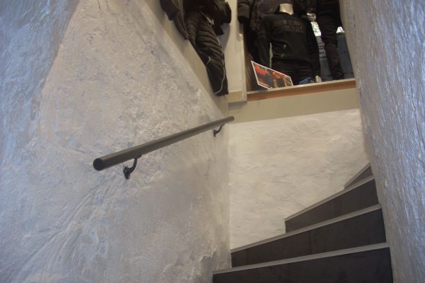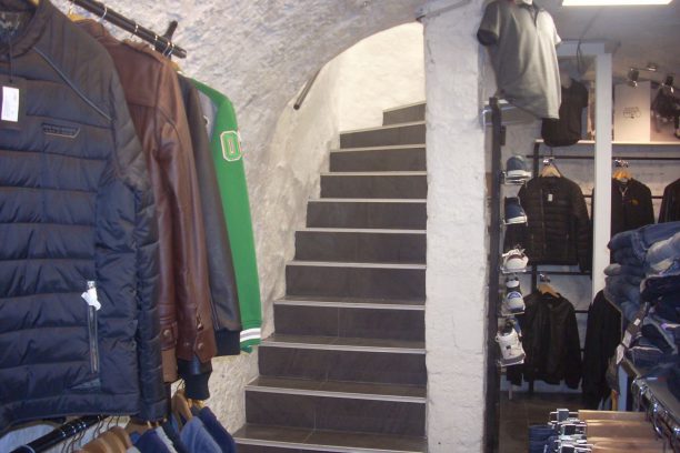 Transfert d'une cave / Création d'un accès à la boutique / Cration d'un escalier en béton / Electricité / Eclairages / Réparation mur et plafond / Pose enduit décoratif / Création d’une chape / Pose de carrelage / Fourniture et pose de supports et d’étagères sur mesure.